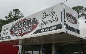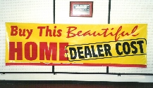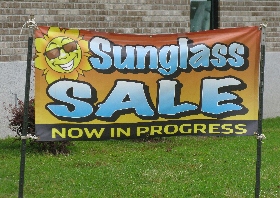 Small to Large SnappySign is your best source for any kind of banner that you need... big or small. We can do everything from a small one color 2'x4' banner up to full-color grand-scale format graphics covering a whole building. Our banners can be used inside or outside. Banner Materials Poly Banner: Very lightweight banner suitable for short term use. Cannot be printed, can only be done with vinyl lettering. 10 oz. Banner - Economy grade vinyl banner. Still best suited for short-term use, this banner can be printed in full color or have vinyl graphics applied on it. 13 oz. Heavy Duty Banner - This is the best option. Still inexpensive, these banners will last a good bit longer and stay looking good indoors or out for a long time. These can be either printed in full color or have vinyl graphics applied to them as well. Mesh Banner - Mesh banners are great for where wind will be a consideration, like ballpark fence sponsor signs, for example. Mesh banners are also good for hanging indoors in store or restaurant windows because the graphics can show on the outside, yet yor can see out from the inside. Finish Options All the above banners (except the poly banner) can be hemmed and/or grommeted. Grommets can be put in just the corners or every 2'. The banner can be hemmed on just the top and bottom or all four sides. You can request the top hem be done in the form of a pole pocket. |